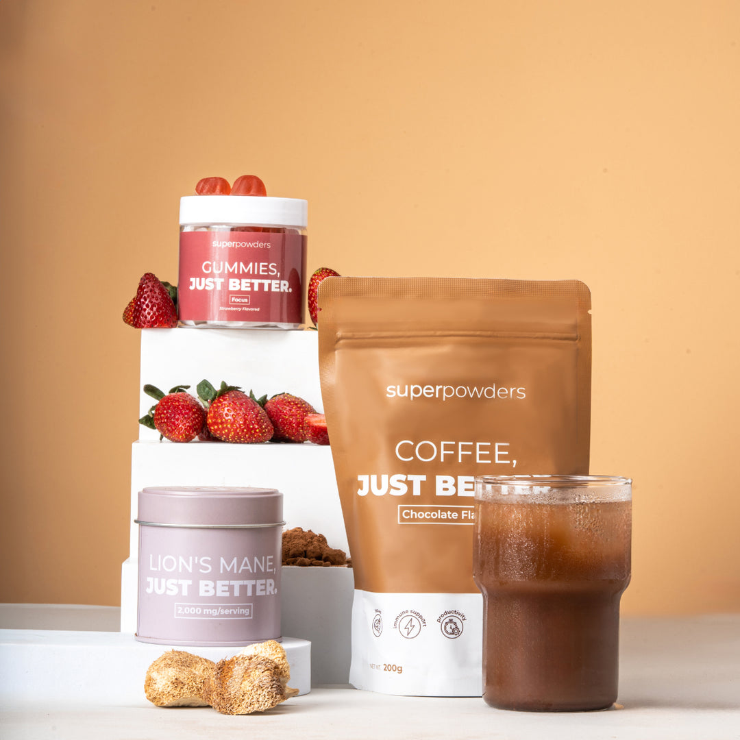 Mix Superpowders with milk, water, coffee, protein shakes, or desserts. Enjoy it hot or iced.